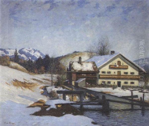Bring the timeless beauty of Ludwig Von Senger's Oberbayerisches Gehoft Bei Schneeschmelze into your home with a handmade oil painting reproduction. Carefully recreated on canvas by skilled artists using traditional techniques, this piece captures the delicate brushwork, subtle light, and vibrant color of the original masterpiece. With museum-level quality and rich texture, it brings elegance and artistic depth to any space. Enjoy free shipping and make this masterpiece a part of your personal collection.