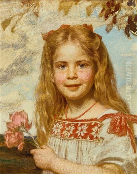 Kinderportrait Der Gabriele Troeltsch Mit Korallenkette Und Blumen In Der Hand