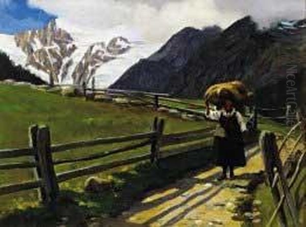 "paesaggio Montano Con Contadina" 1895