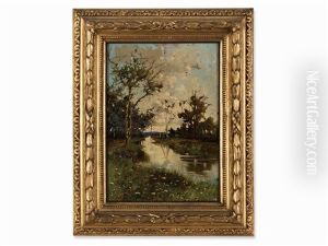 Flusslandschaft Mit Grasender Schafherde, Deren Hirte Sich Mit Einer Bauerin Unterhalt