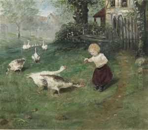 Girl Tending Geese