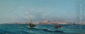 Fishing Vessels Drawing In The Nets Before Naples