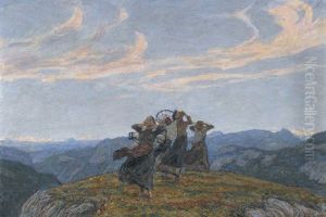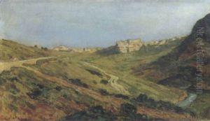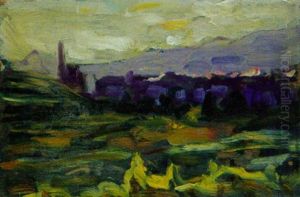 Gebirgslandschaft Mit Fernem Dorf Und Blumenwiese