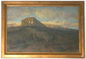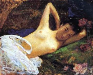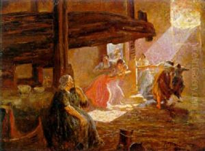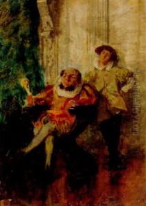 Portrait Of A Lady Wearing A Blue Silk Dress With A White Collar, Complete With Blue Silk Hat And White Feather