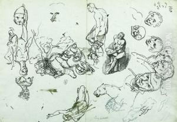 Diverses Etudes De Personnages Et Tetes