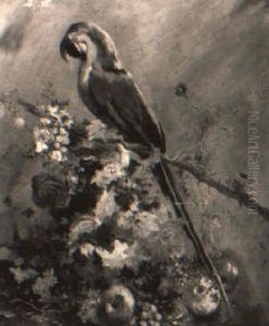 Parrot On A Grapevine In A Floral Landscape