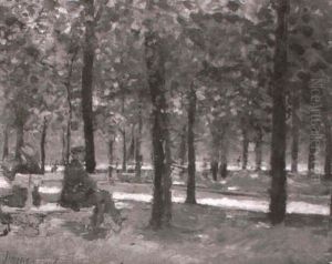 Figures Picnicking On A Sunlit Path Beside A River