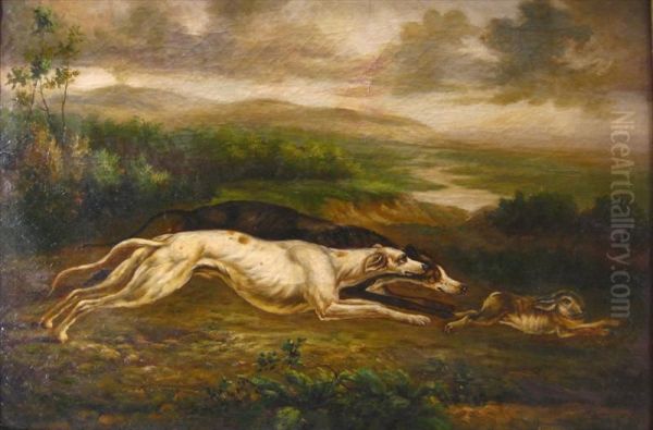 Hunt Scene With Dogs Chasing Arabbit
