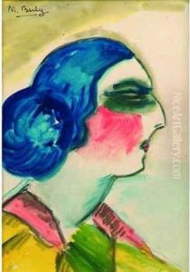 Portrait De Femme Au Chignon Bleu.