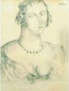 Jeune Femme Au Collier De Perles Bleues.