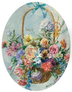 Korb Mit Wiesenblumen Und Zwei Schmetterlingen