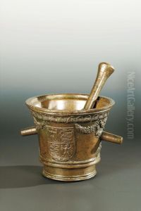 Mortaio Con Armi Sforza E Con Festoni, Completo Di Pestello; Bronzo.