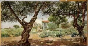 Manuel Garcia y Rodriguez was a Spanish painter known for his landscapes, garden scenes, and historical themes. Born in Seville, Spain, in 1863, Garcia y Rodriguez developed a passion for art at a young age. He trained at the School of Fine Arts in Seville, where he was influenced by the works of Spanish masters such as Murillo and Zurbarán. His education continued in Rome, where he absorbed the Italian influence, which would later become evident in his works.