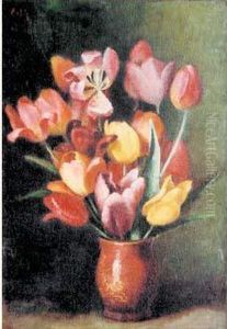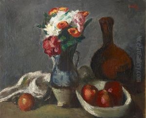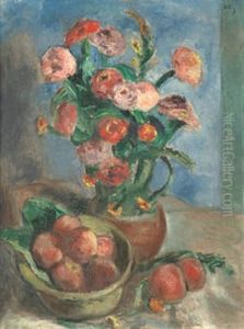 Nature Morte Au Bouquet Et Corbeille De Fruits