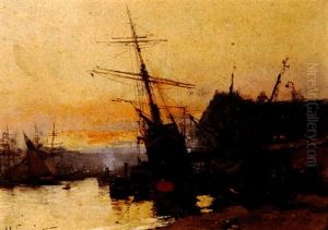 Ladies Promenading By A River, With Other Figures In Punts