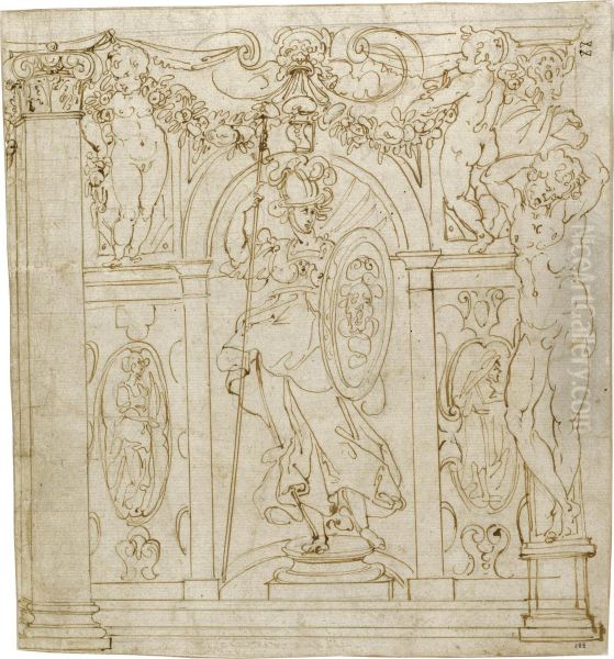 Minerva In A Niche, Flanked By Putti And A Caryatid