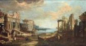 An Architectural Capriccio With Figures Amongst Classical Ruins