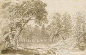 A Landscape With Figures Conversing In A Park Beside A Fountain