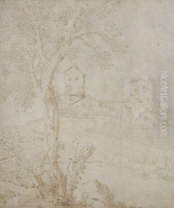 A Watermill In An Extensive Mountainous Landscape, With Peasants Climbing Trees In The Foreground
