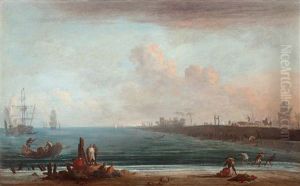 Vue D'un Estuaire Avec Barque De Peche A Voile, Cavalier Et Villageois (+ 3 Others, Various Sizes; 4 Works)