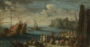 Hafenlandschaft Mit Lagernden Kaufleuten