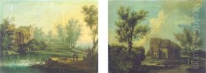 An Italianate River Landscape With Figures On A Bank, A Temple Beyond