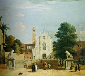 Capriccio View Of Ruins And A Church In The Distance, With An Artist Sketching