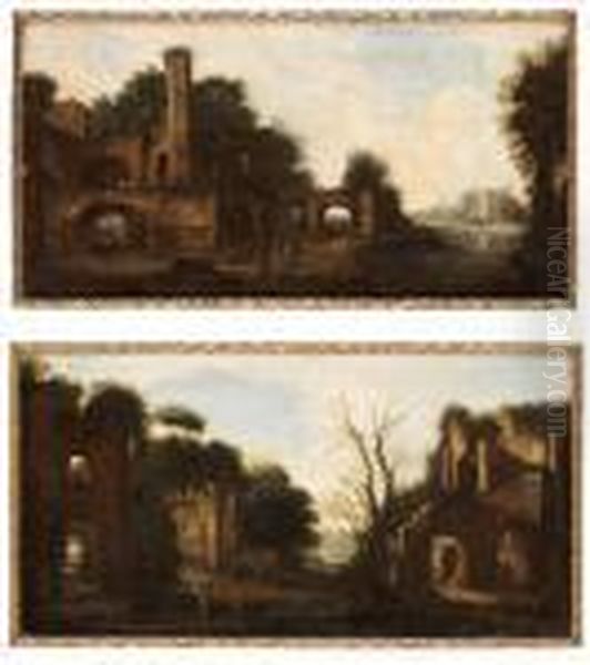 Klassiskt Ruinlandskap Med Figurstaffage