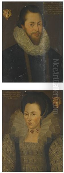 Portrait Of Richard Perceval, Of Twickenham, Somerset, Secretary Of The Court Of Wards In Ireland (+ Portrait Of His Wife, Alice, Daughter Of John Sherman Of Ottery St. Mary, Devon; Pair)