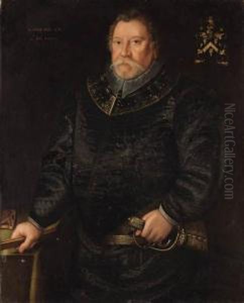 Portrait Of Stephen Bull, Master Gunner Of England, Half-length, Ina Black Doublet And A Gorget, His Left Hand Resting On The Hilt Ofhis Sword