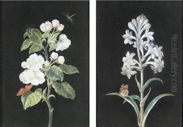 A Pair Of Studies Of Flowers And Insects: Apple Blossom And Another White Flower, With Butterflies And Dragonflies