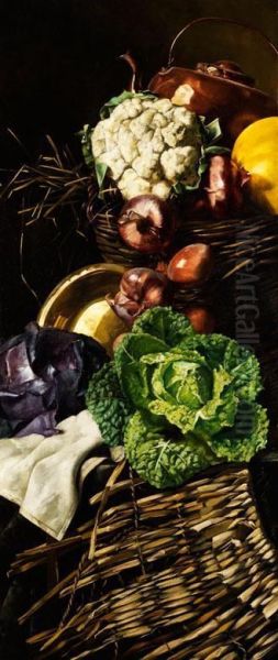 Stilleben Mit Gemuse, Kupfergeschirr Undweidenkorb