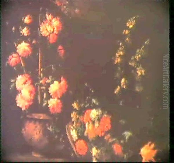 Bouquets De Fleurs Sur Un Entablement Oil Painting by Margherita Caffi