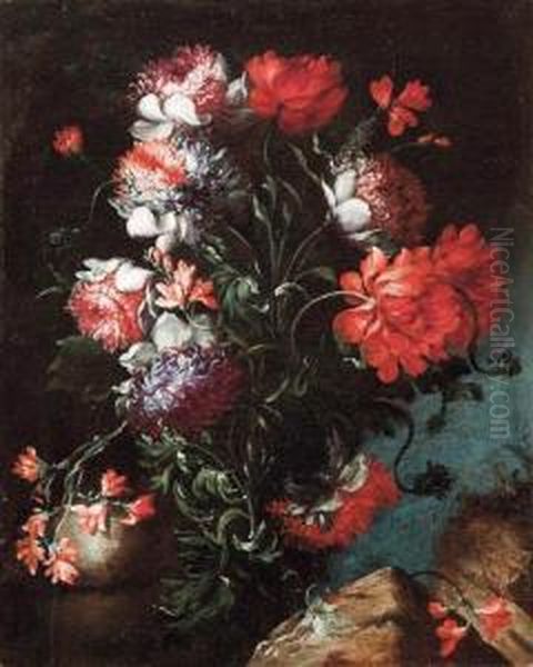 Composizione Floreale Su Basamento Di Rocce