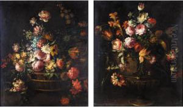 Still Life Of Various Flowers In A Basket