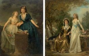 A Portrait Of A Lady With Her Daughter, In A Parkland Setting