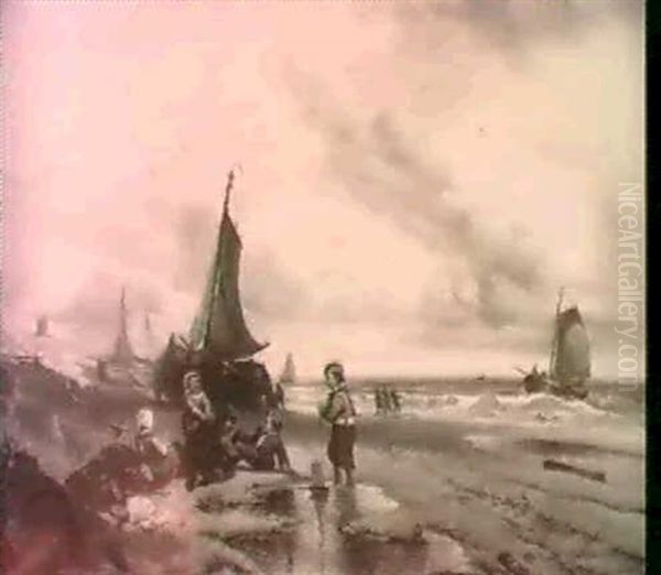 Children Playing On The Beach Oil Painting by Mari ten Kate