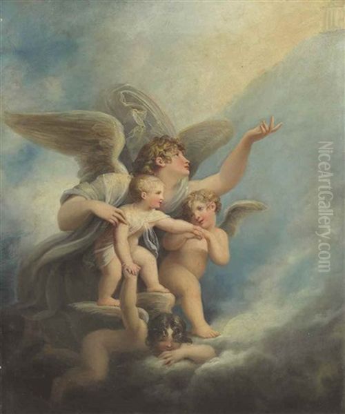 An Angel And Putti Accompanying A Child's Soul To Heaven