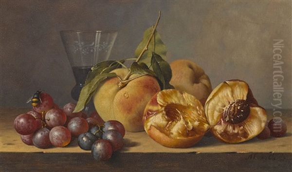 Stillleben Mit Pfirsichen, Trauben Und Einem Weinglas