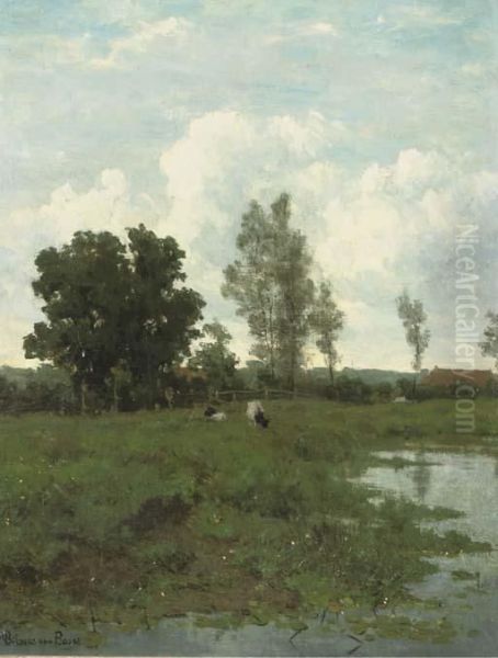 Landschap In Groningen: Cattle Grazing By A Pond