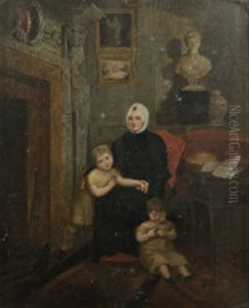 Mrs. Tighe, Seated In The Drawing Room At Rossana Beneath The Bust Of Herself By Bartolini, With Two Of Her Grandchildren