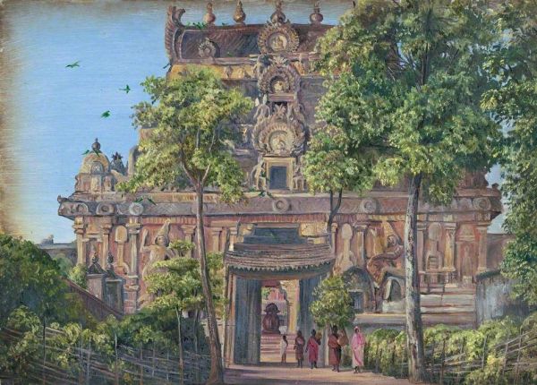 Bring the timeless beauty of Marianne North's Gate of the Temple of Tanjore (Thanjavur) with the Great Bull Seen through Doorway, Tamil Nadu, India into your home with a handmade oil painting reproduction. Carefully recreated on canvas by skilled artists using traditional techniques, this piece captures the delicate brushwork, subtle light, and vibrant color of the original masterpiece. With museum-level quality and rich texture, it brings elegance and artistic depth to any space. Enjoy free shipping and make this masterpiece a part of your personal collection.