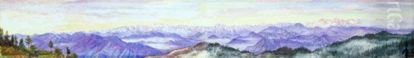 Pine-Clad Slopes of Nagkunda, North India, and View of the Distant Mountains