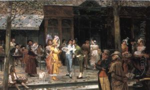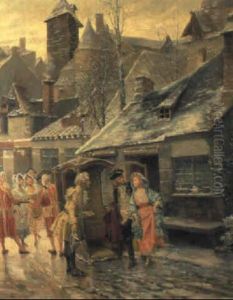 A Village Scene With A Street Crier And His Audience