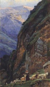 Paisaje De Anticoli Con Pastora Y Cabras