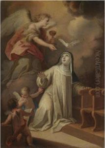 Saint Catherine Of Siena Receiving Holy Communion From An Angel