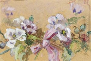 Kupferschale Mit Weisen Und Rosa Blumen Gefullt