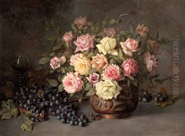 Stillleben Mit Rosen Und Weintrauben