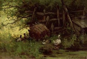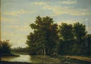 Figures Resting By A Stream In A Wooded Landscape
