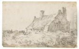 Waldlandschaft Mit Reedgedecktem Bauernhaus.